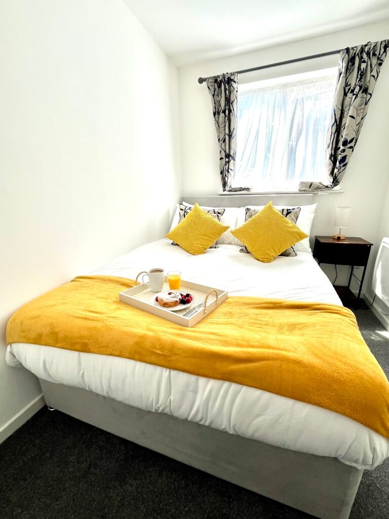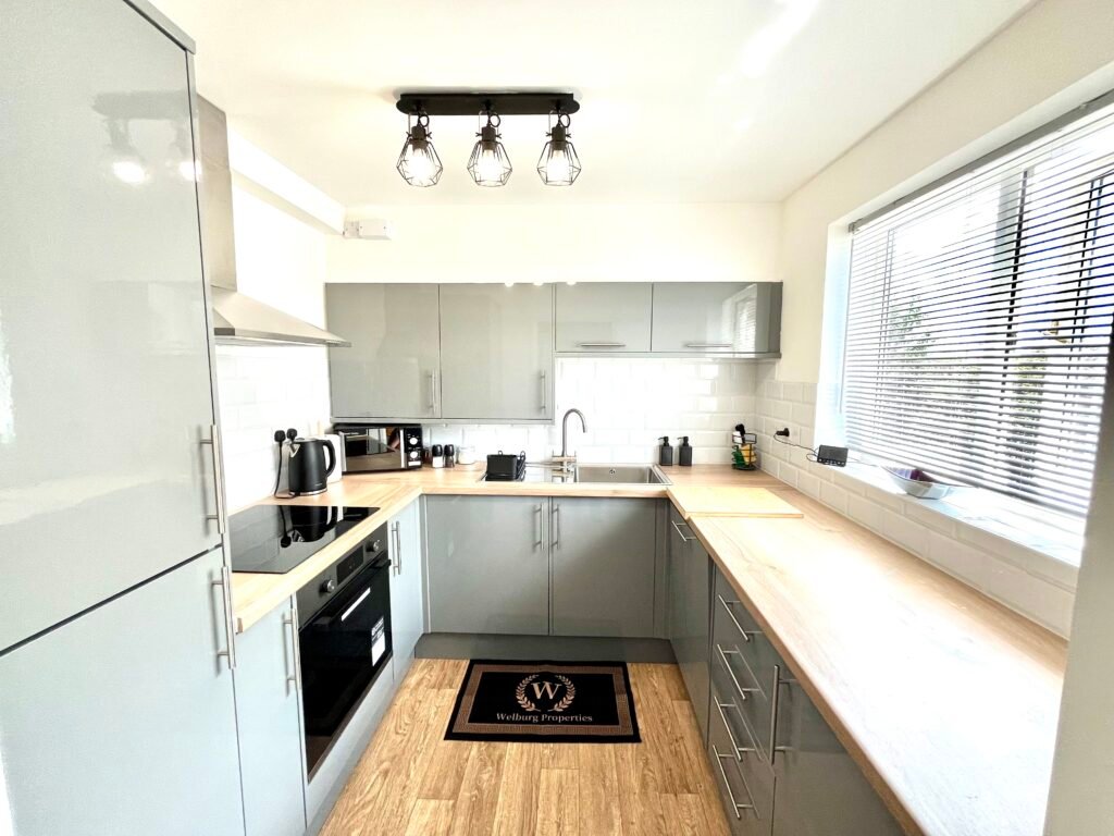 Welburg Properties offers this stylish serviced accommodation or short term rental in Colchester, Essex, nestled within a mile of the City centre and very close to the University of Essex. Perfect for business, leisure, and contractors. The property has been recently refurbished, boasts 2 bedrooms, a fully kitted kitchen, a generous sized combined living room/dining room and bathroom. The entire property is situated on the first floor. Allocated off street parking and shared visitor parking are available to our guests.The property sleeps 4 adults or 5 with the sofa bed. People who stay complement its comfort, space and quietness for a city centre location. Colchester Castle and Leisure World are within walking distance. For quietly unforgettable stays with comfort, convenience and subtle luxury, Stay Well. Stay Welburg.